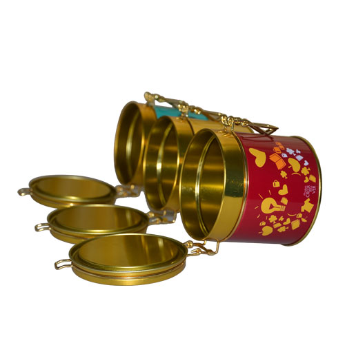 這款高檔鐵罐鐵料采用優(yōu)質(zhì)的寶鋼馬口鐵,厚度達到23絲(0.23mm);罐蓋采用雙層材料加厚制作,罐底采用封底結構。鐵罐采用鎖扣翻蓋形式,方便實用,且在密封性能上突出。此款鐵罐可適用于茶葉、食品、促銷禮品、化妝品等行業(yè)。