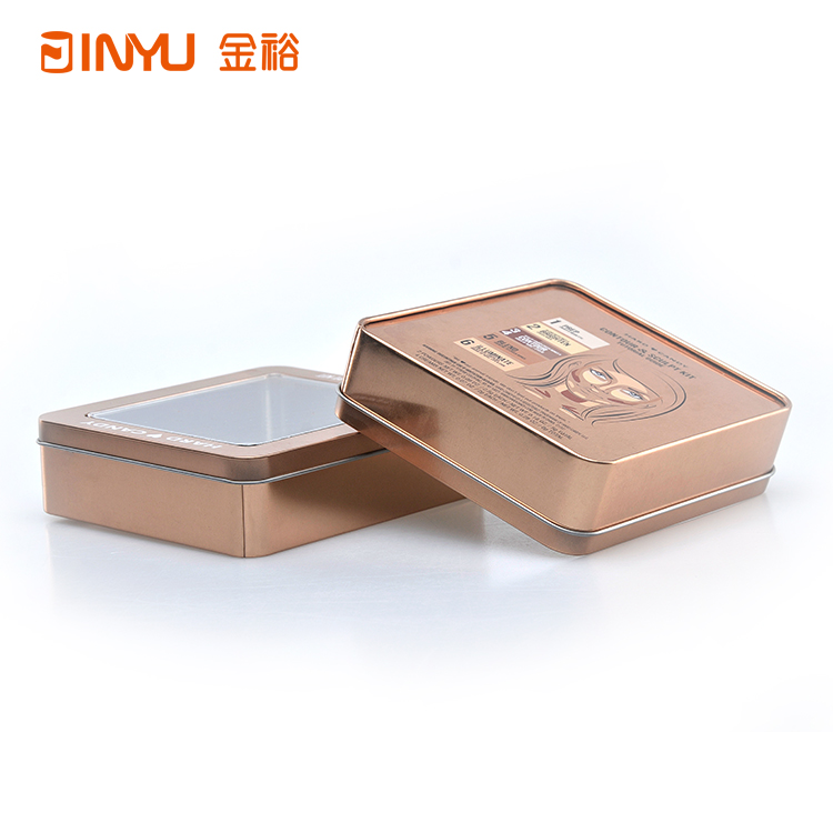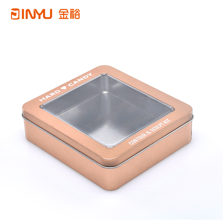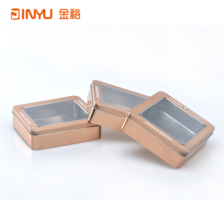 該款化妝品鐵盒采用透明PVC天窗設(shè)計,可以清晰直觀的看見鐵盒內(nèi)裝的產(chǎn)品;
