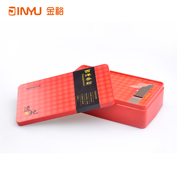 【產(chǎn)品簡(jiǎn)介】此款長(zhǎng)方形鐵盒是一個(gè)系列的,用來(lái)裝保健品的,有西洋參粉、松花粉等,鐵盒采用拍底結(jié)構(gòu),內(nèi)鎖口設(shè)計(jì),易撕紙內(nèi)蓋等,將產(chǎn)品包裝提升一個(gè)檔次,是一款精美的保健品鐵盒。