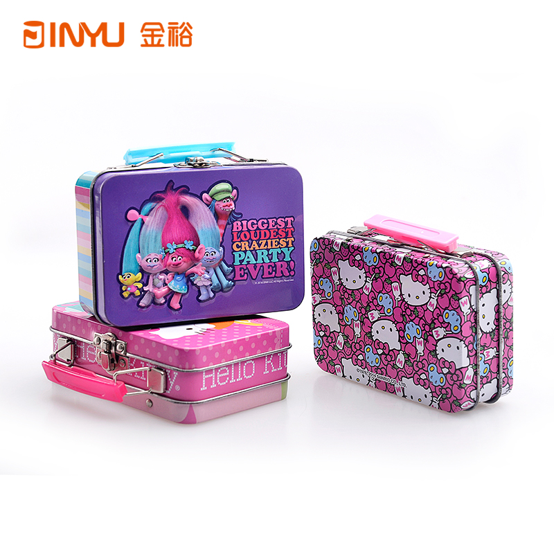【產(chǎn)品簡介】該系列手提鐵盒,采用卡通圖案元素設(shè)計,工藝精美,也充滿童趣,其應(yīng)用范圍也較廣,廣泛應(yīng)用于收納盒、化妝品盒、午餐盒、促銷禮品盒等產(chǎn)品包裝。尺寸多樣,具體可聯(lián)系客服了解。