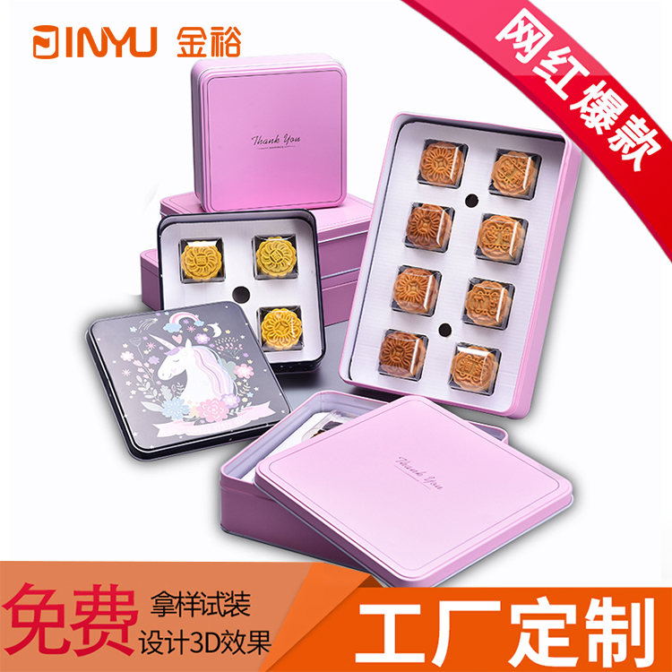 形狀上有正方形、長(zhǎng)方形、圓形、異形等,可一站式定制月餅鐵盒內(nèi)襯及外包裝禮盒。