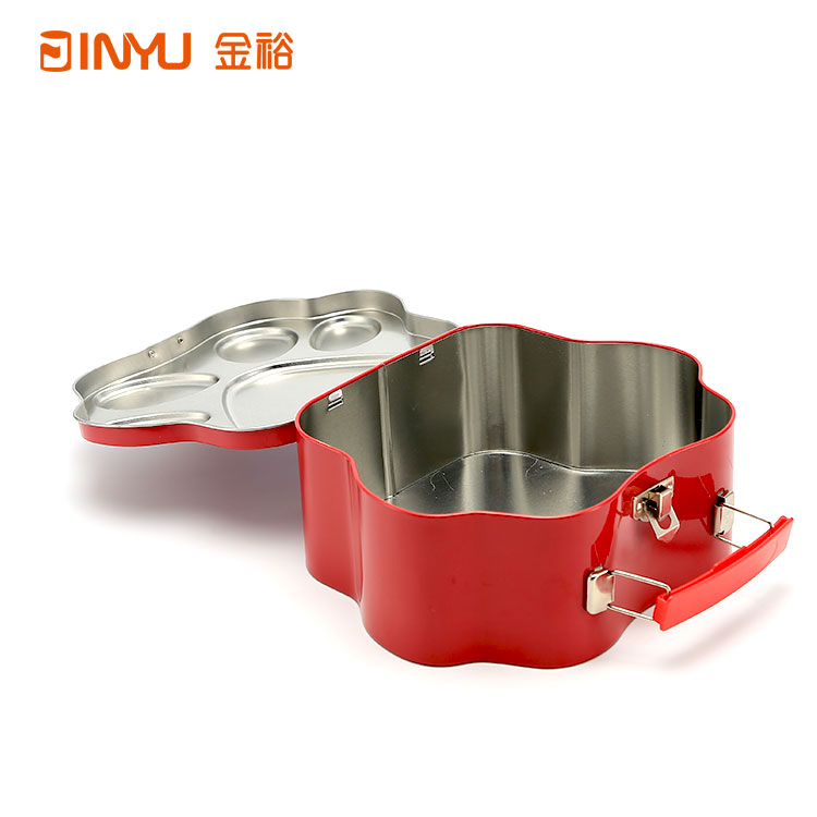 【產(chǎn)品簡介】這款促銷鐵盒是我公司現(xiàn)有模具生產(chǎn),為了吸引客戶眼球,我們設(shè)計了鎖扣和手提帶,再搭配激凸工藝,使得這款鐵盒非常生動形象,增加了鐵盒的美觀程度,如有其它定制需求可以聯(lián)系客服,金裕制罐廠家大量定制促銷禮品鐵盒系列量大價優(yōu)!