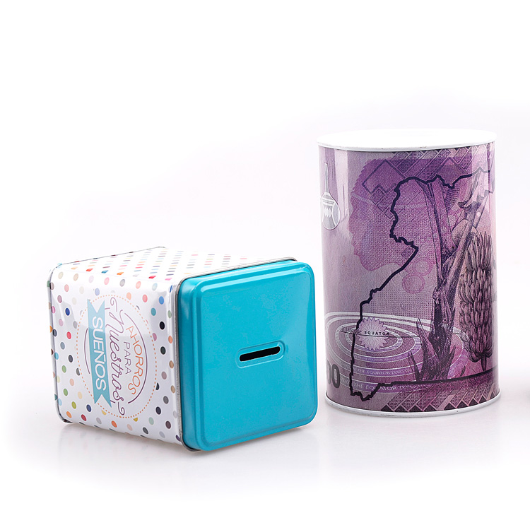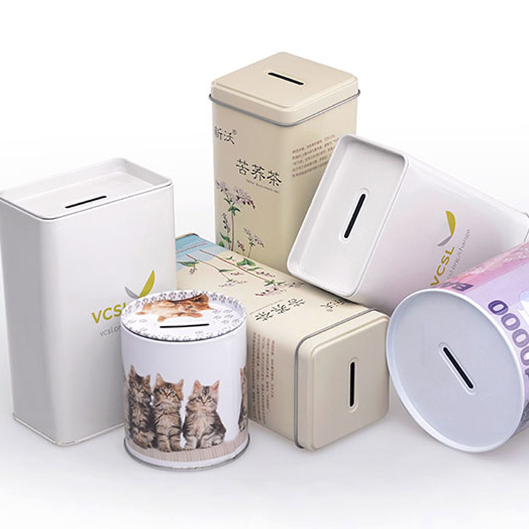 馬口鐵存錢罐的造型可以選擇不同的尺寸,方形圓形的都可以根據(jù)需求個性化定制,封底結(jié)構(gòu),天地蓋設(shè)計(jì),印刷可以選擇四色或者專色印刷。