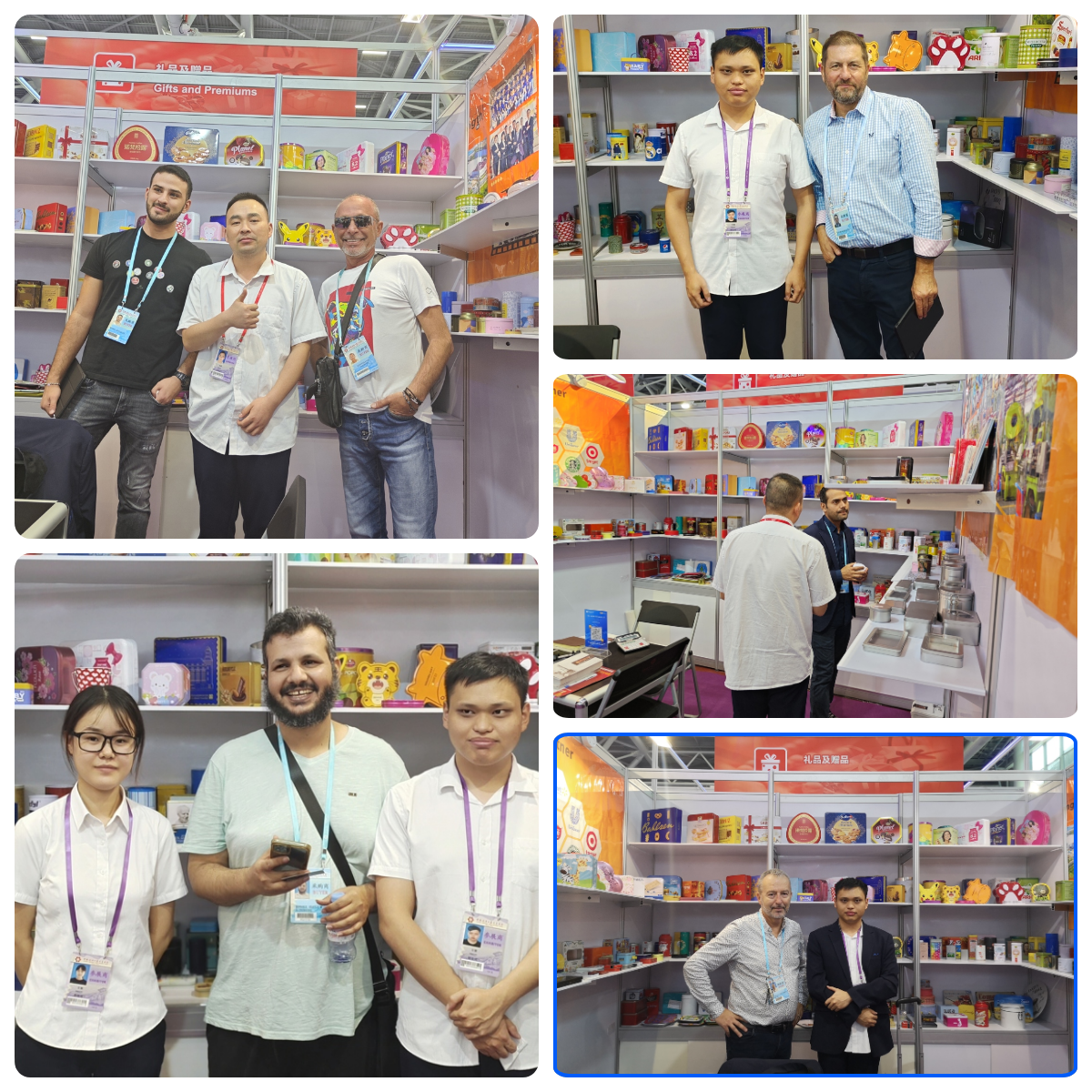 本次參展,公司外貿(mào)小伙伴早做籌劃,精心準(zhǔn)備,積極行動,高標(biāo)準(zhǔn)地完成了展位預(yù)定、裝潢及各項(xiàng)準(zhǔn)備工作,確保了公司以最好的狀態(tài)和最佳的形象順利參展。展位上,一排排印刷亮麗、造型豐富的鐵盒包裝吸引了眾多參觀者的目光,紛紛拍照打卡,小伙伴們熱情地向客戶介紹產(chǎn)品特點(diǎn)和優(yōu)勢,為他們答疑解惑現(xiàn)場一片熱鬧景象。