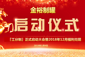 窗外雪花紛飛,窗內(nèi)熱情似火,中午12點(diǎn),“金裕制罐工分制管理正式啟動(dòng)大會(huì)暨2018年12月份福利兌現(xiàn)會(huì)”在我司三樓報(bào)告廳如期召開,此次活動(dòng)主要是對(duì)2019年工分制正式執(zhí)行的一次動(dòng)員大會(huì),同時(shí)也是針對(duì)2018年12月份工分制試運(yùn)行階段,工分排名獎(jiǎng)勵(lì)...