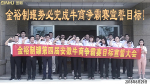剛從合肥牛商爭霸賽啟動儀式回來,我們金裕的小伙伴們就馬不停蹄,牛商爭霸賽宣誓大會干起來!6月28日下午15:30,銷售、運營人員大會在鐵盒包裝廠家金裕制罐二樓會議室召開會議。這次會議是根據第四屆牛商爭霸賽的總目標進行具體的銷售目標細分,并簽下軍令狀。在這次會議上,鐵盒包...